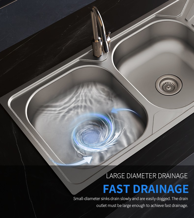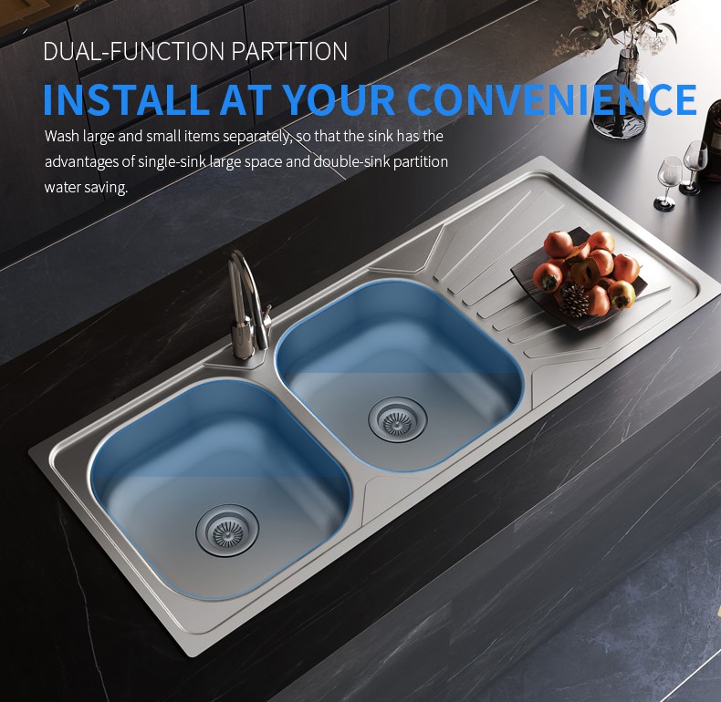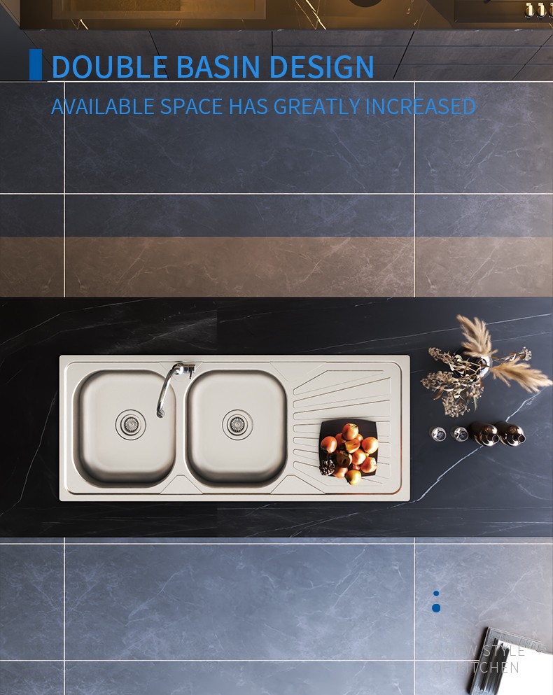 Double Bowl Stainless Steel Kitchen Sink with Drainboard